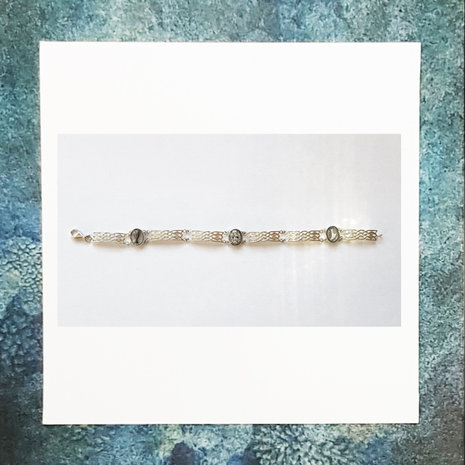 Dit mooie dames asarmbandje in keltische stijl, is gemaakt van Sterling Zilver en heeft 3 ovaalvormige ashouders. De band sluit met een karbijnslotje. De as kan zichtbaar of onzichtbaar verwerkt worden.