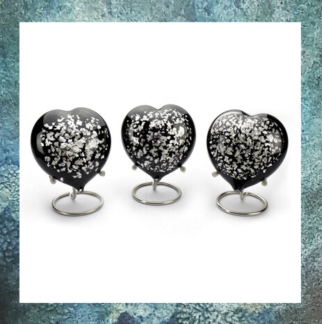 Het bovenstaande Hart heeft een holle binnenruimte waarin u zelf een kleine hoeveelheid as kunt doen. Aan de onderzijde/achterzijde zit een opening die, eenmaal gevuld, afgesloten wordt met een zelfhechtend sluitplaatje.