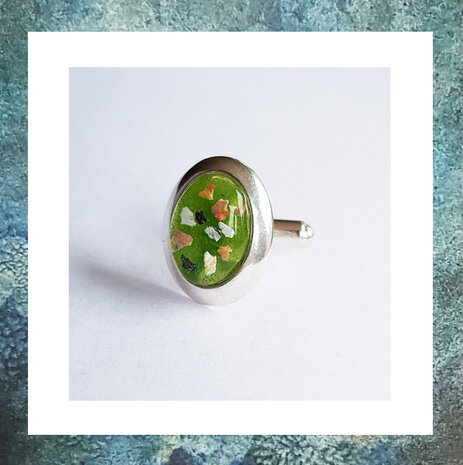 Door een specialistische verwerking methode waarbij crematie as tot een granietachtige steen wordt samengeperst ontstaat een prachtig, uniek assieraad. De harde heldere kern heeft een aantrekkelijke, juweel-achtige uitstraling. Dit wordt het middelpunt van uw sieraad. Deze kern wordt gevat in een zilveren, ovale houder.